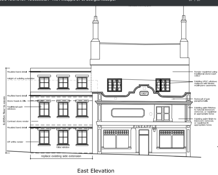 Councillors followed officers’ advice to approve the proposals for The Pineapple on St George’s Road after hearing the Edwardian facade and pub sign would be retained and a “horrendous” adjoining building with blocked-up windows would be demolished and rebuilt.