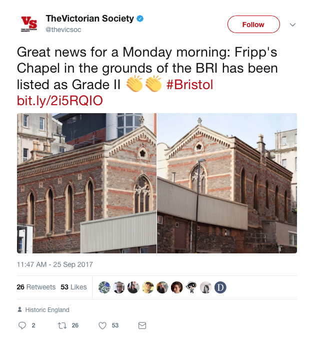 “The whole former BRI site was considered for listing in 2010 and in 2015, when we recommended that overall the buildings had been too altered. However, in response to an application to consider the chapel alone, and in light of new information provided, the chapel has been listed in its own right.