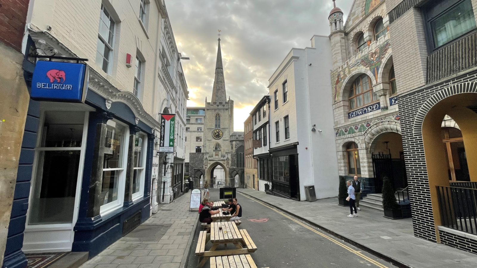 The church used to border Gropecunt Lane, now known as Nelson Street