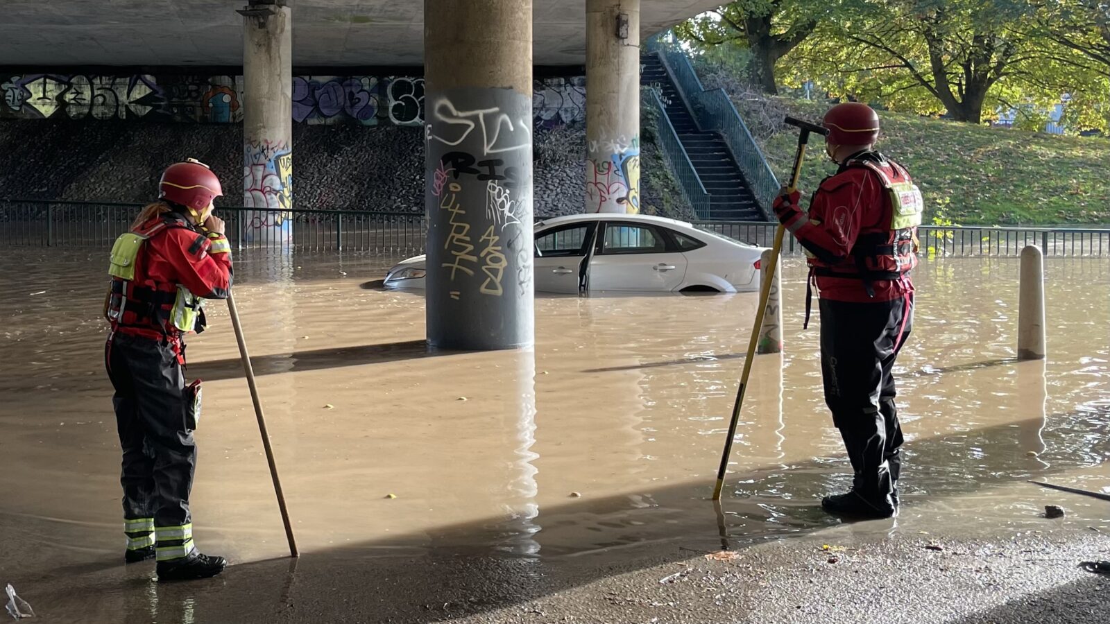 A pump was due to arrive soon after 4pm to clear some of the water; with multiple road closures causing lengthy tailbacks.
