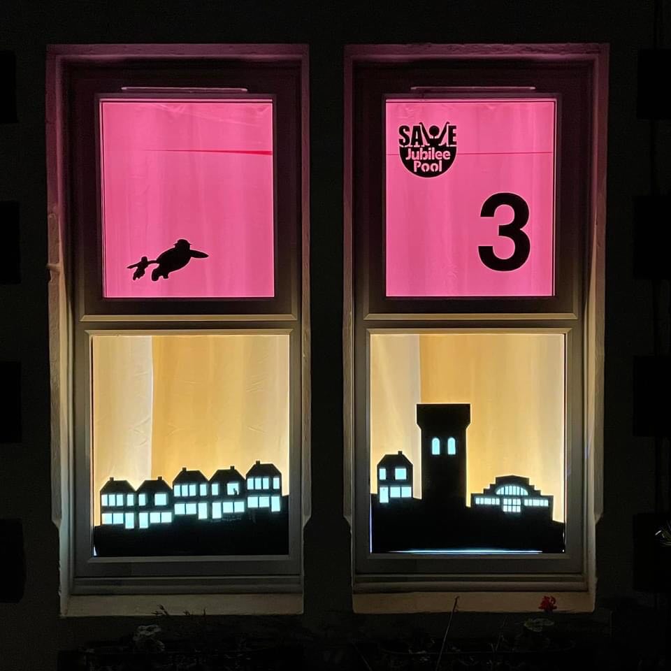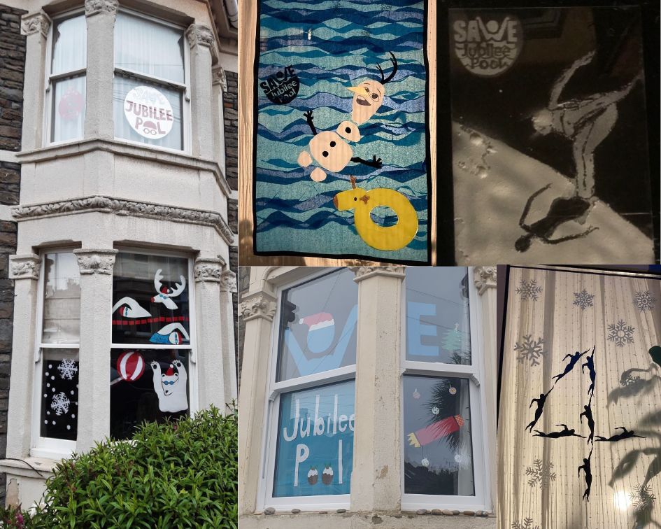 The Knowle street’s annual Advent window display has this year been dedicated to highlighting the need to save Jubilee Pool, a community facility much-loved by many that faces an uncertain future.