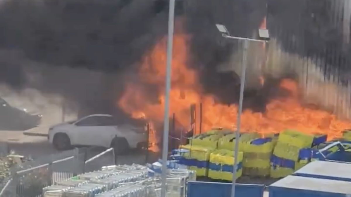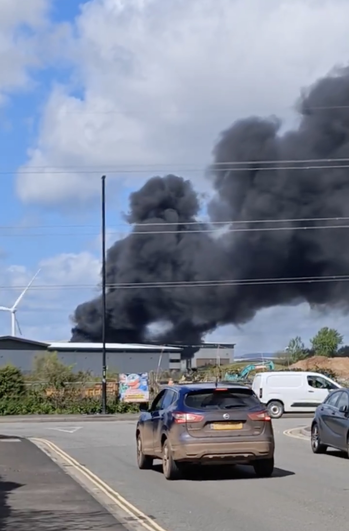 Plumes of black smoke and flames could be seen rising from an Evri Depot at around 1.30pm on Tuesday. The scene could be seen from nearby offices and the M5.