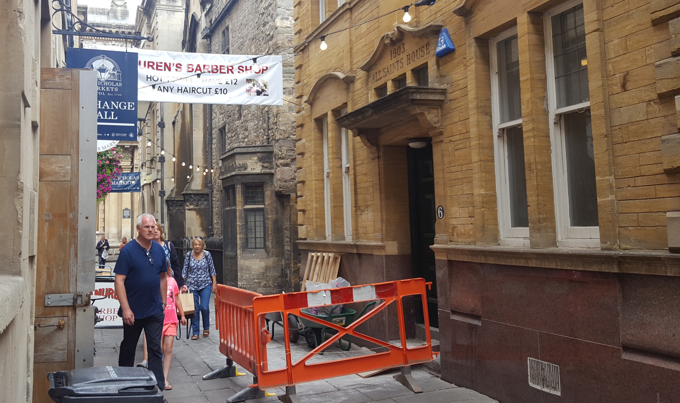 On Thursday morning, builders were still working at 6 All Saints Lane, most recently Rodney King & Partners solicitors, with three bags of rubble in a wheelbarrow containing similar material covered in red clay that had previously been transported to the skip on Broad Street.