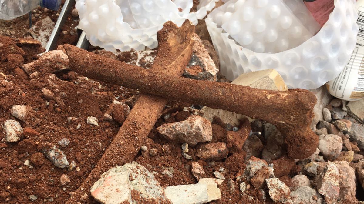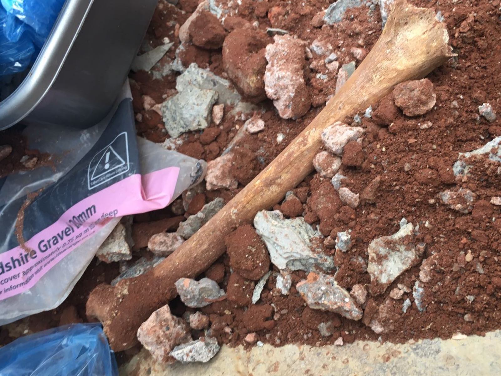 “When he was digging it out it was clumped together. He thought it was pipes sticking out. When he threw it in, all the soil fell off and we saw it was bones.”
