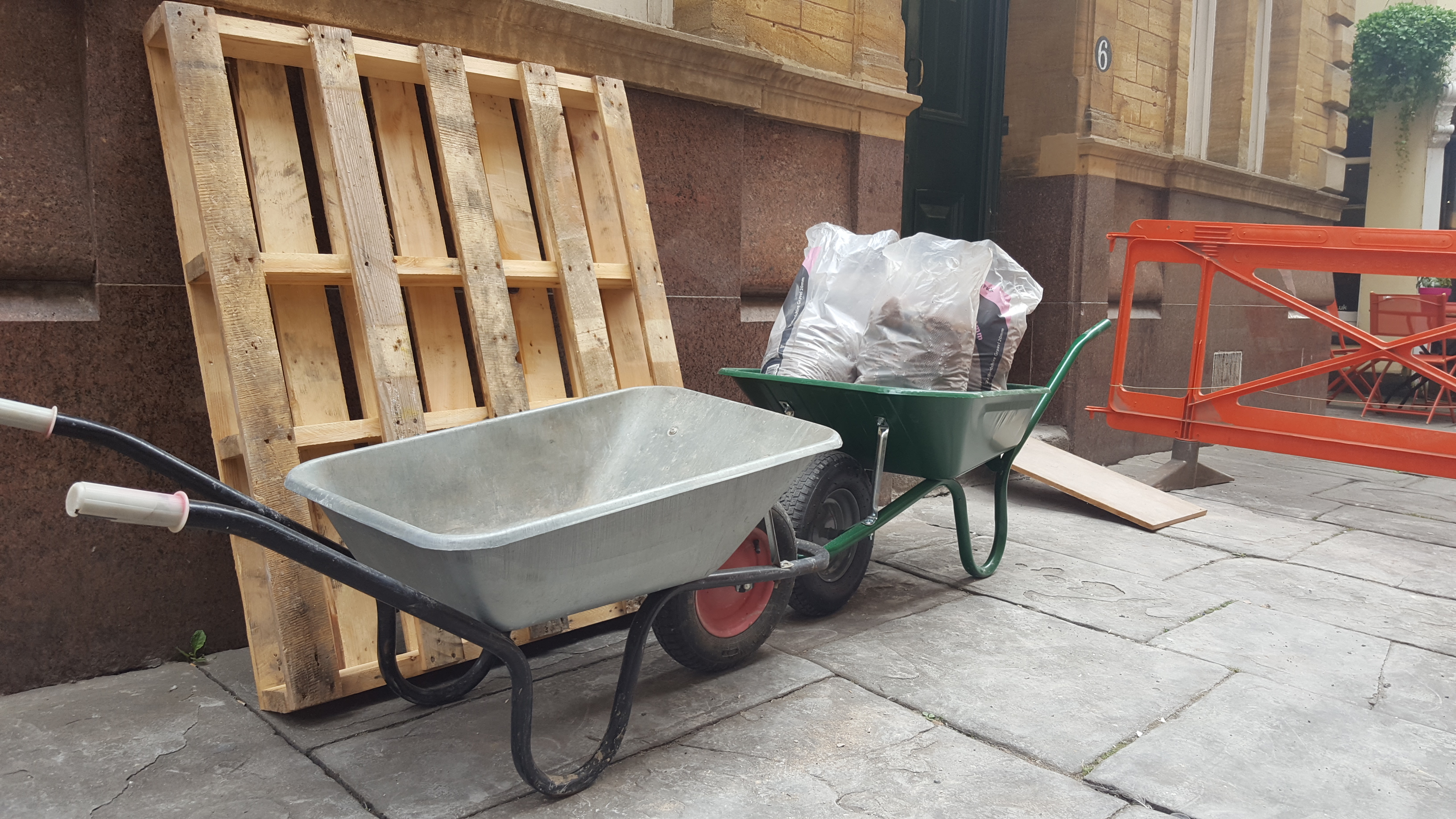 Wheelbarrows outside All Saints House – photo by Josiah Wong