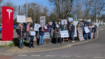 Many of the marchers will be travelling to London on Tuesday for a larger protest against the US President’s State Visit to the UK.