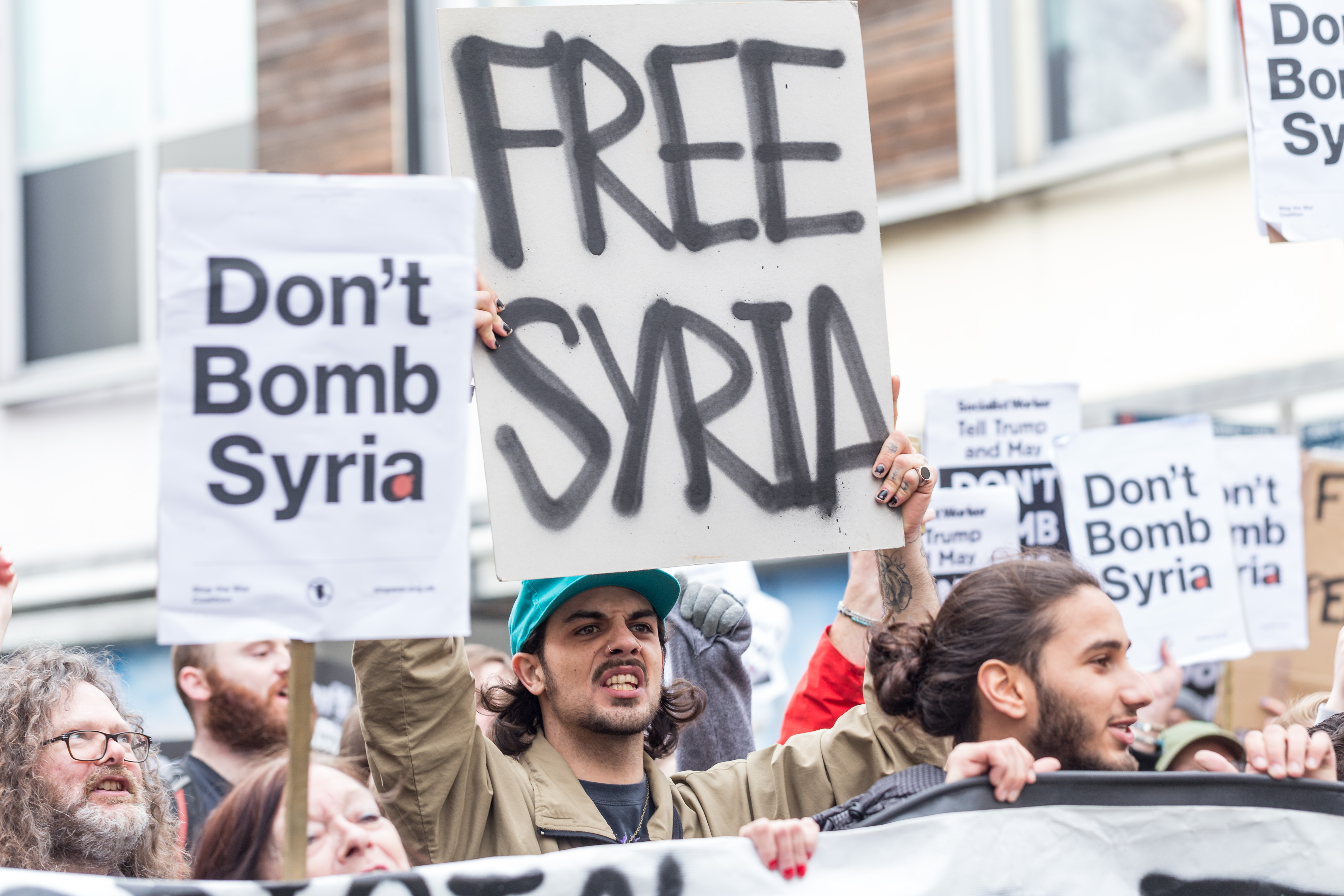Others simply shouted: “Don’t bomb Syria!”