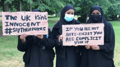 A peaceful and silent act, the event was held not only in solidarity with protests in the USA, but also in direct response to the death of Belly Mujina, who died from Covid-19 after being spat at by a member of the public in a racial attack. Spat on while on duty in London as a railroad worker, the police have closed the investigation into the attack.