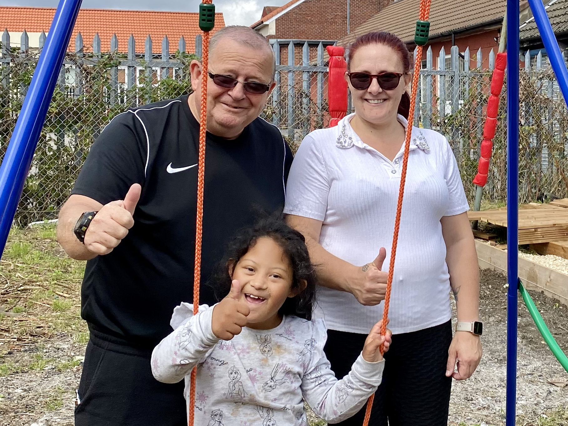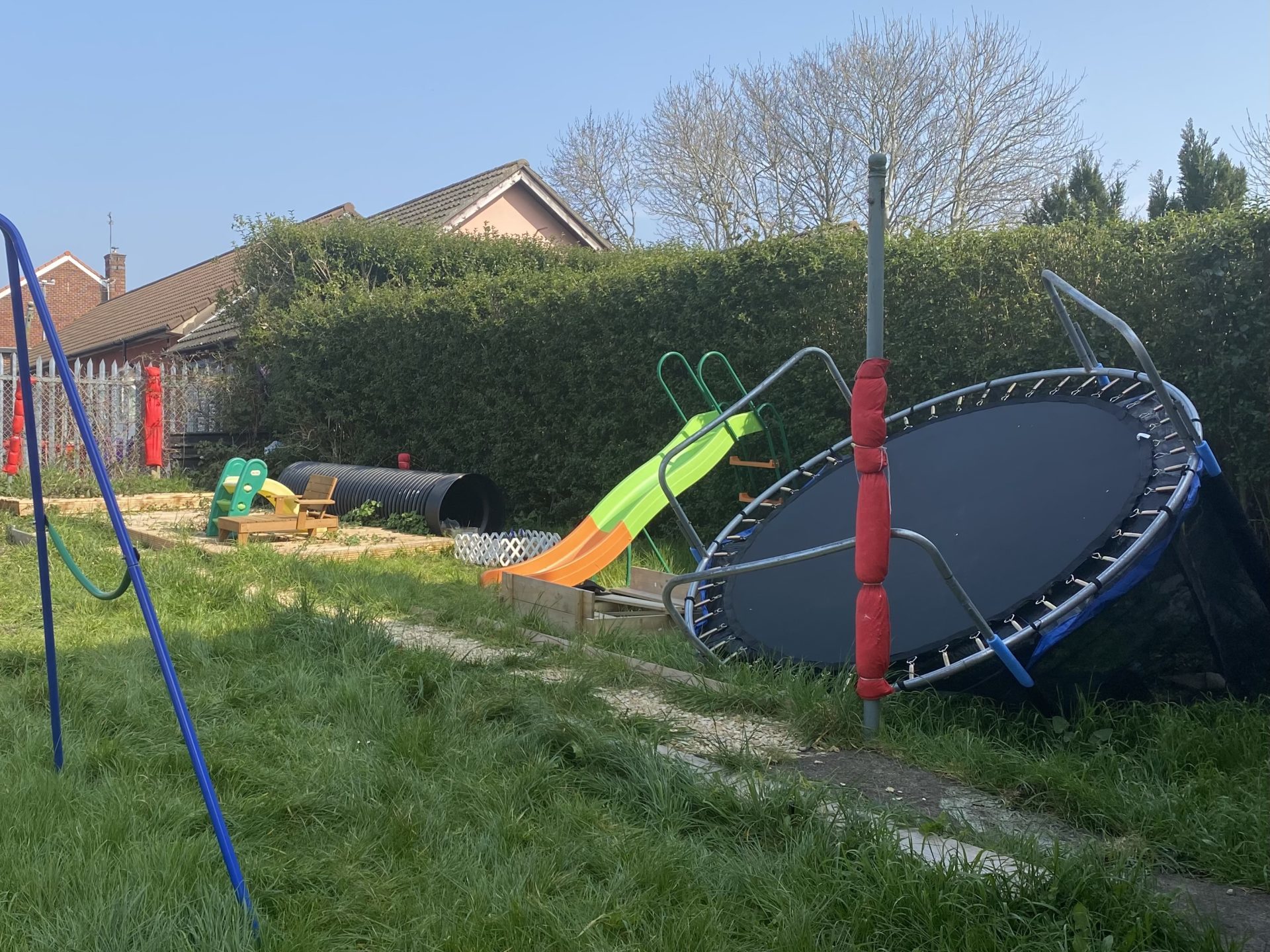 The work Nick did to the garden included replacing fencing and putting in decking. He also bought a new slide, trampoline and Wendy house for it.