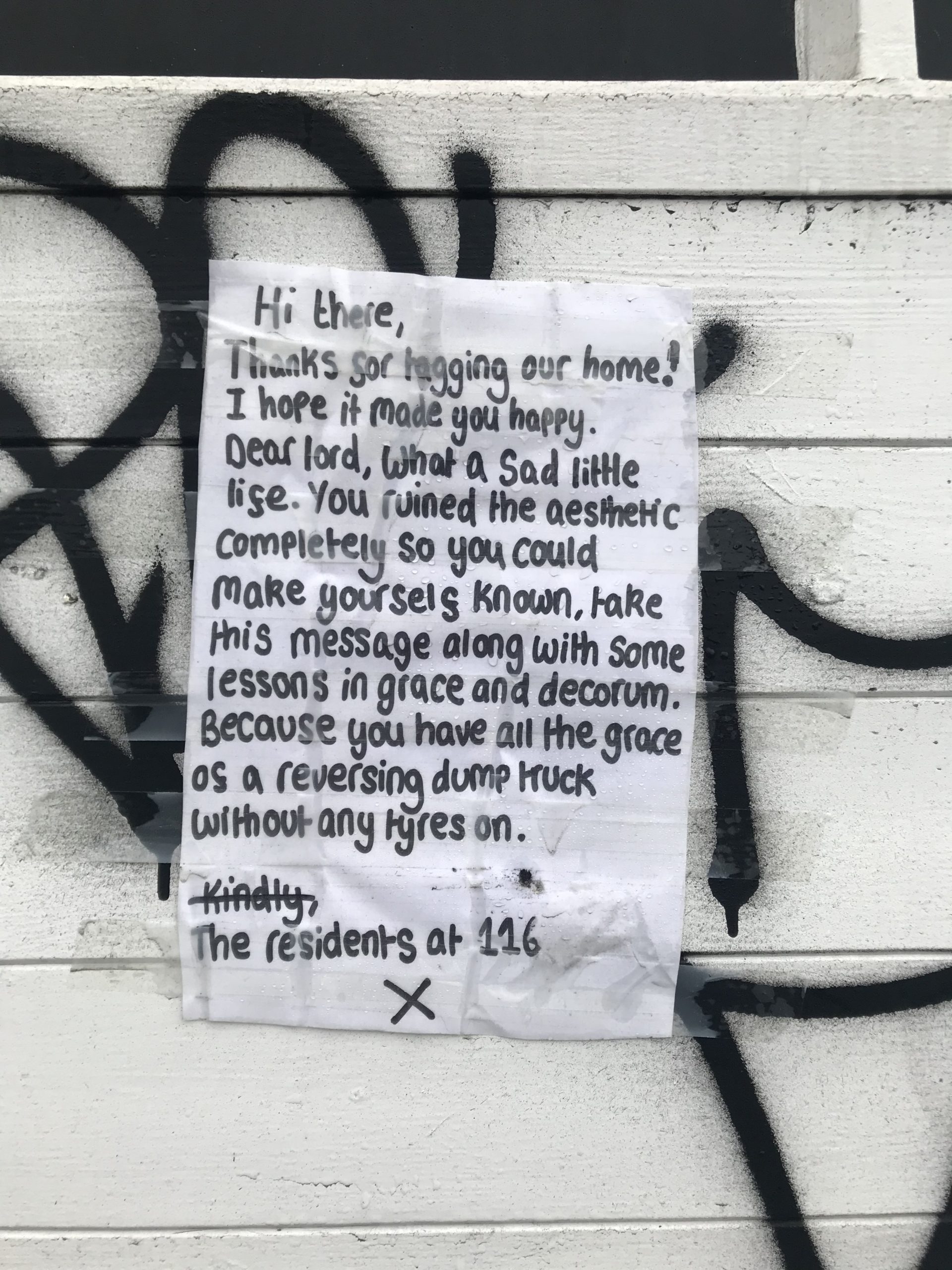 “I was not overjoyed to be honest,” Katherine told Bristol24/7. “It’s not their home. I get it if you’re doing street art. There are so many beautiful pieces in Bristol. But a tag? Come on!”