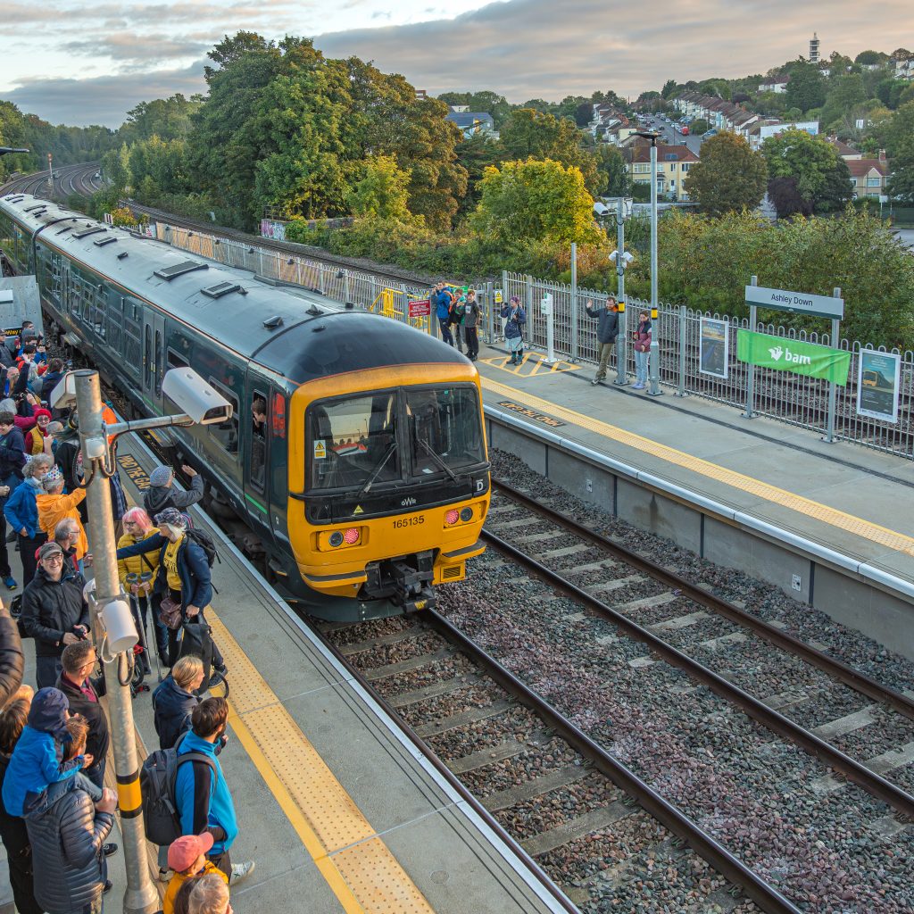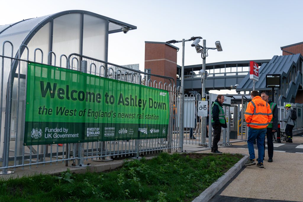 Dozens of people gathered at Ashley Down station on Saturday morning to greet its first timetabled train.