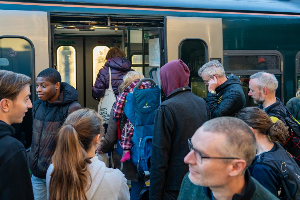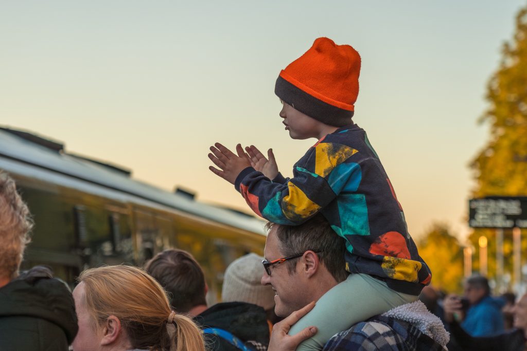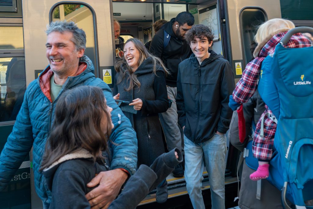 Unlike the official opening the previous day, there was no cake; but there was much exuberance as passengers welcomed in the train from Temple Meads at 7.33am.