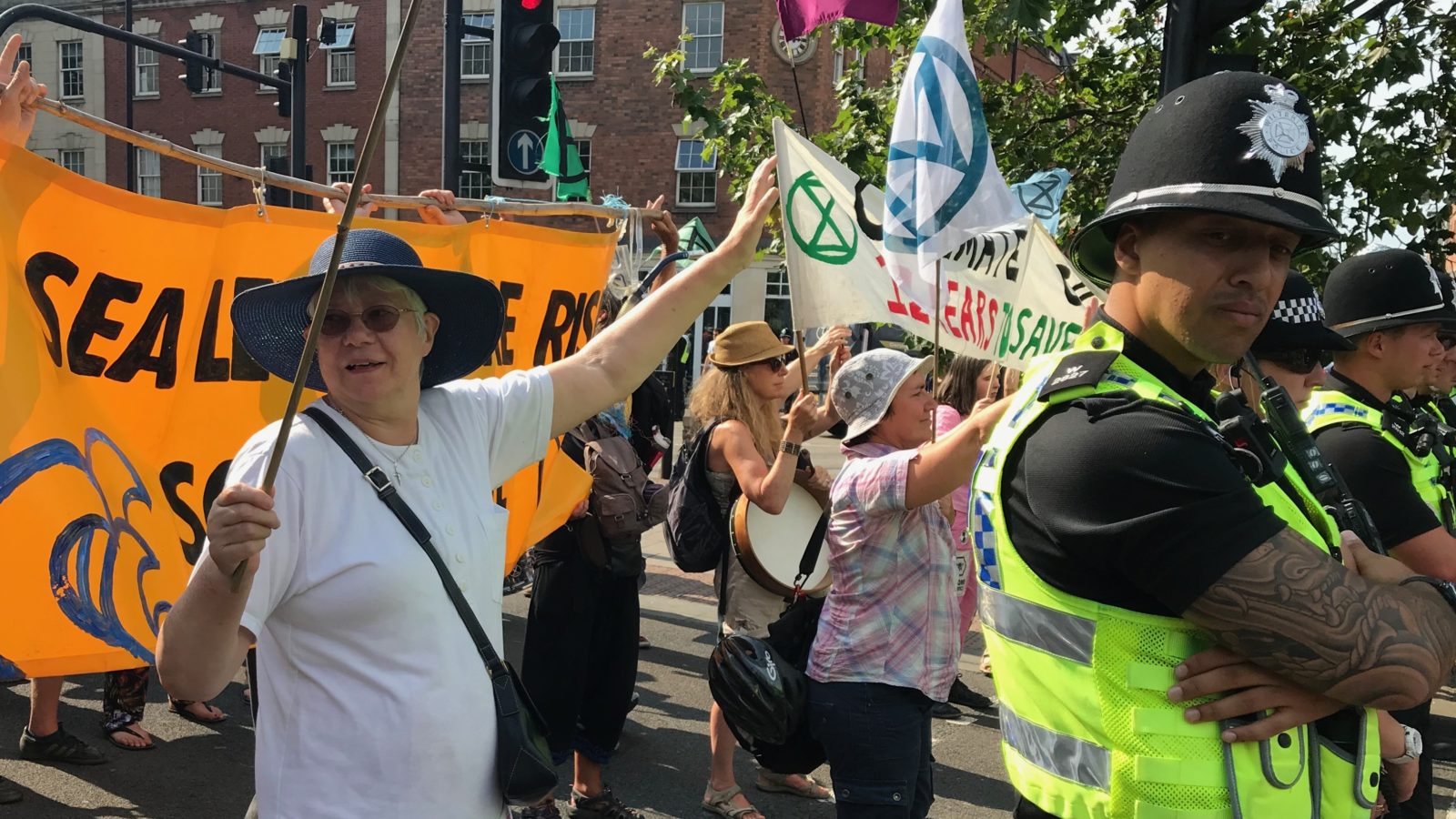 Extinction Rebellion’s second day of their ‘Summer Uprising’ saw protesters leave their Bristol Bridge base to head towards Cabot Circus, Park Street and College Green.