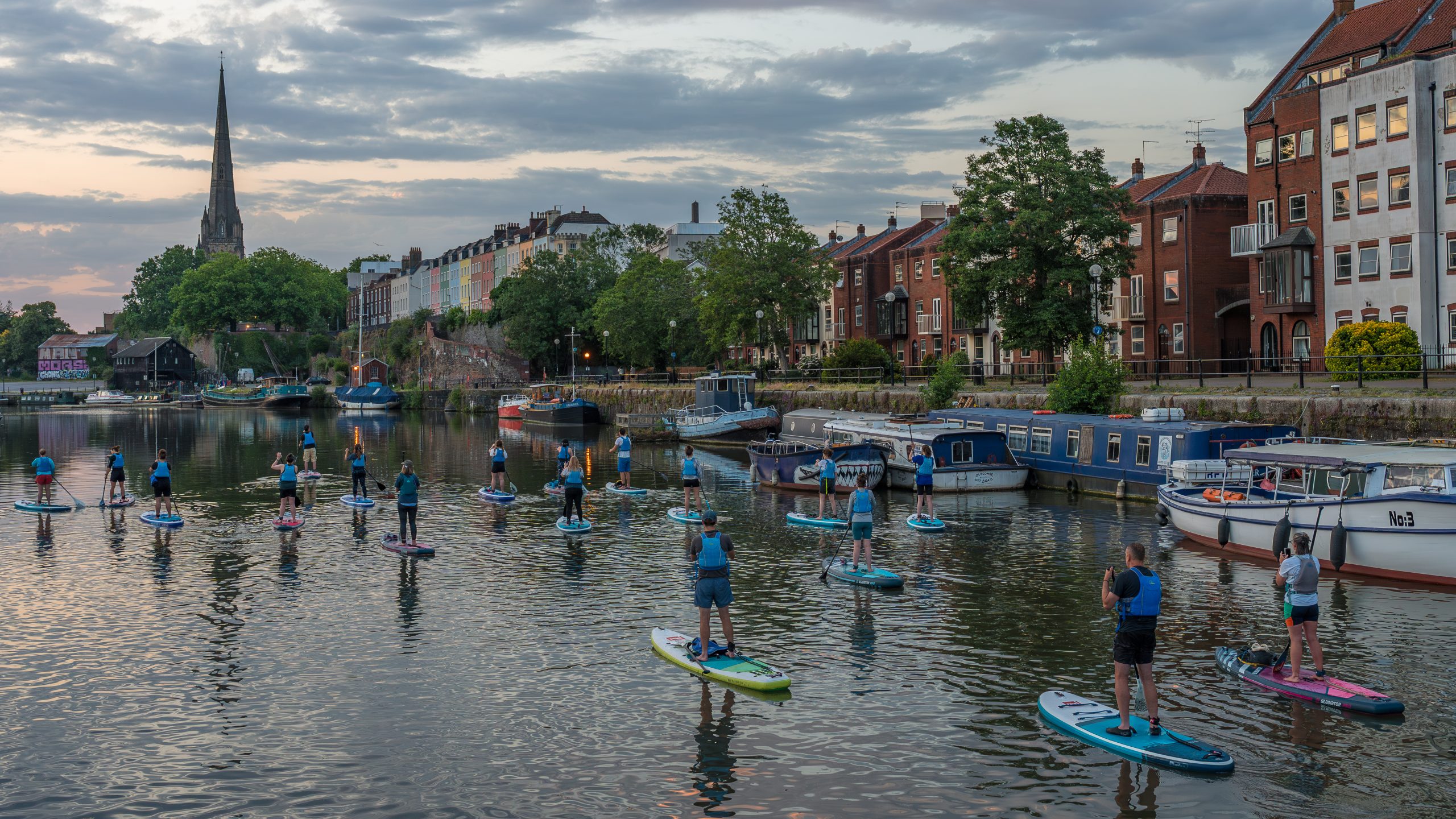Every year, SUP Bristol, the city centre-based stand up paddleboarding activity group, head out for a group paddleboarding session as the sun begins to rise on the day of the summer solstice.