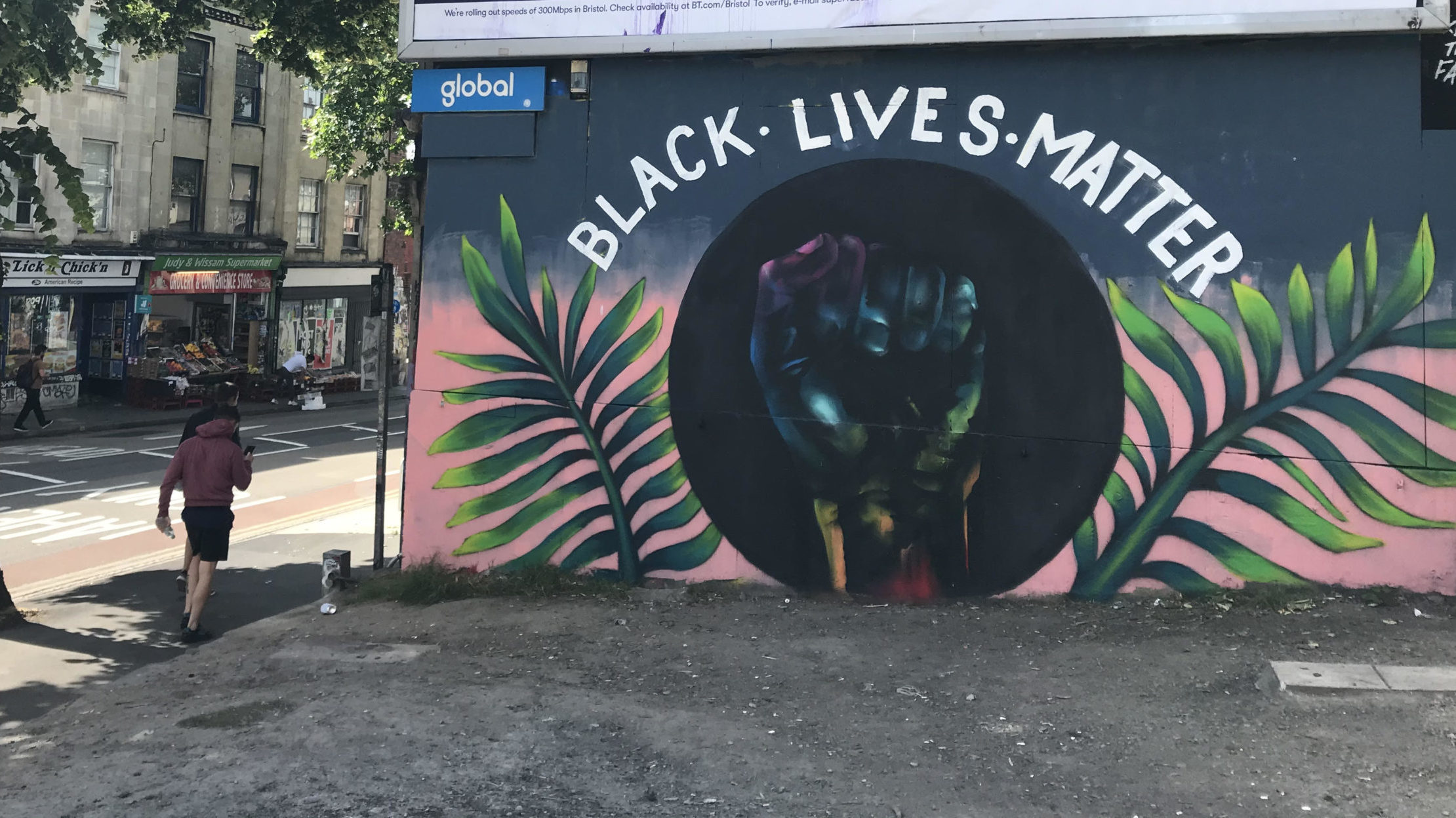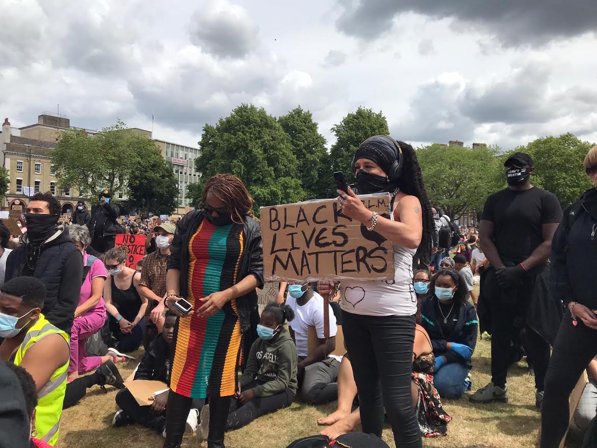 Black Lives Matter signs above the Tesco on College Green. Photo: Phil Riley