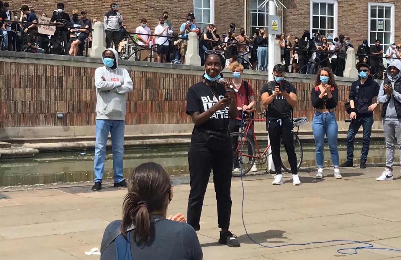 Speakers continue to tell the crowd about their own experiences of systematic racism. Photo: Martin Booth