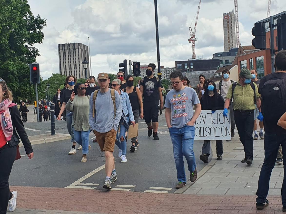 The march heads towards Castle Park. Photo: Phil Riley