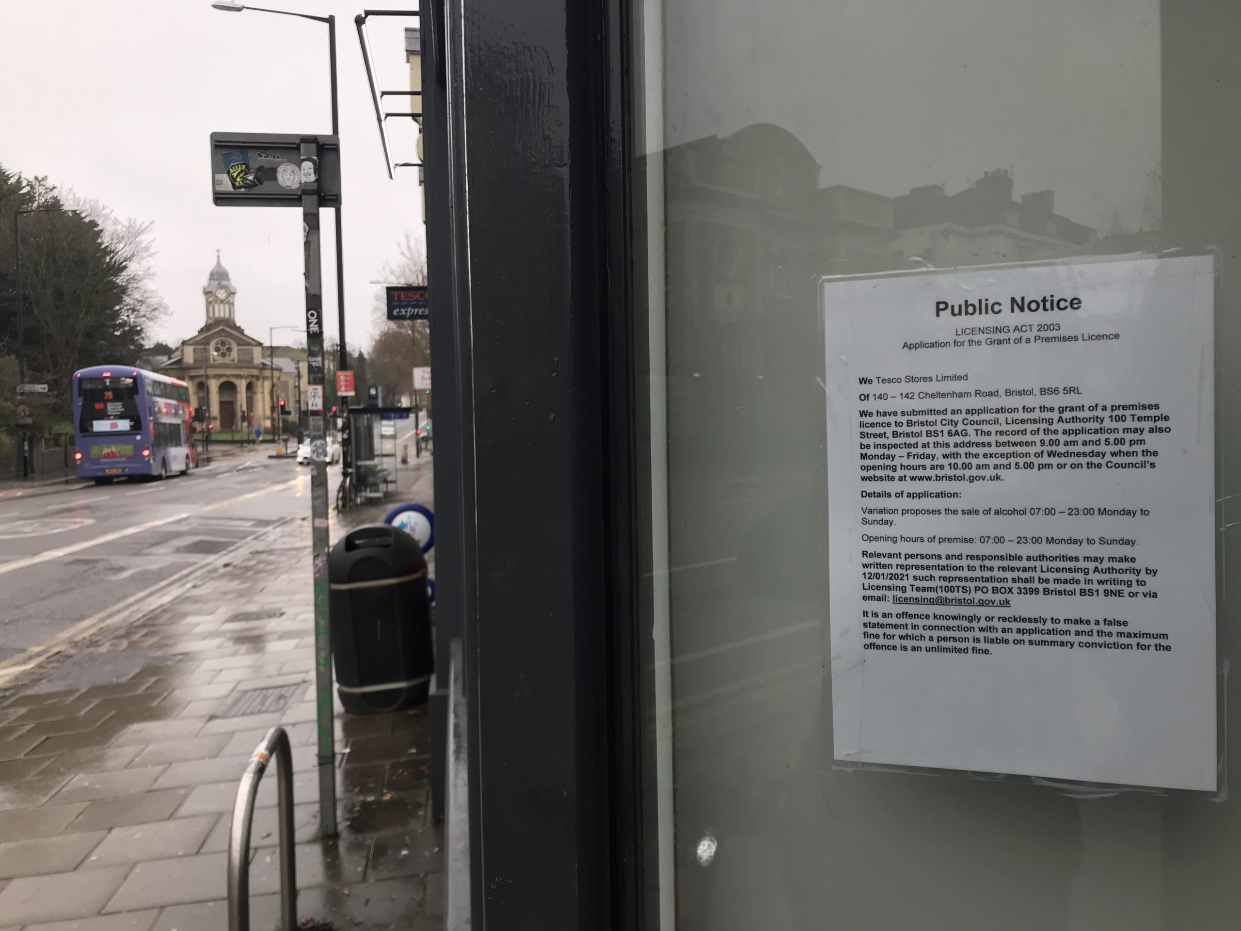 Tesco are applying to sell alcohol in the Cheltenham Road shop seven days a week from 7am to 11pm.
