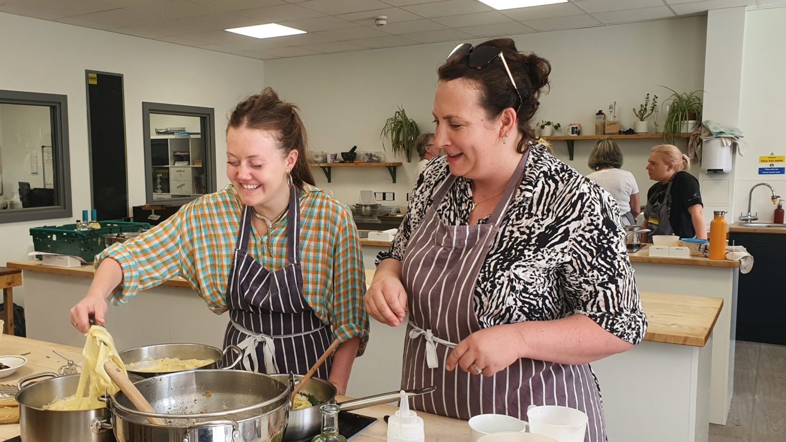 Having spent the morning making pasta from scratch, as well as preparing panna cotta and salad, some of the most recent cohort take a break from the kitchen to talk to Bristol24/7 about their experience.