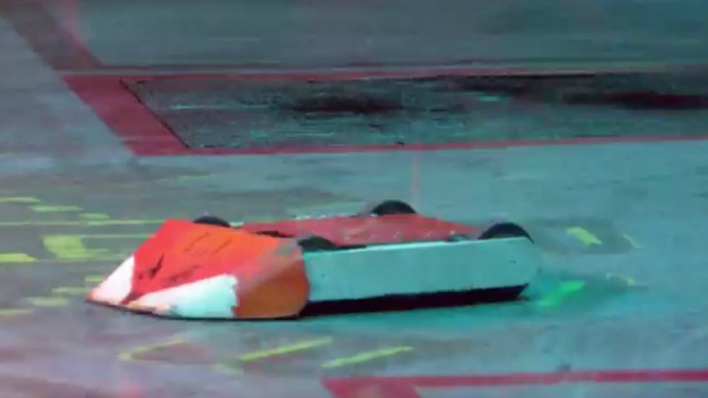 In the first round, Foxic skulks around on the periphery of the arena, staying out of trouble as the other three robots tear strips of metal from each other.