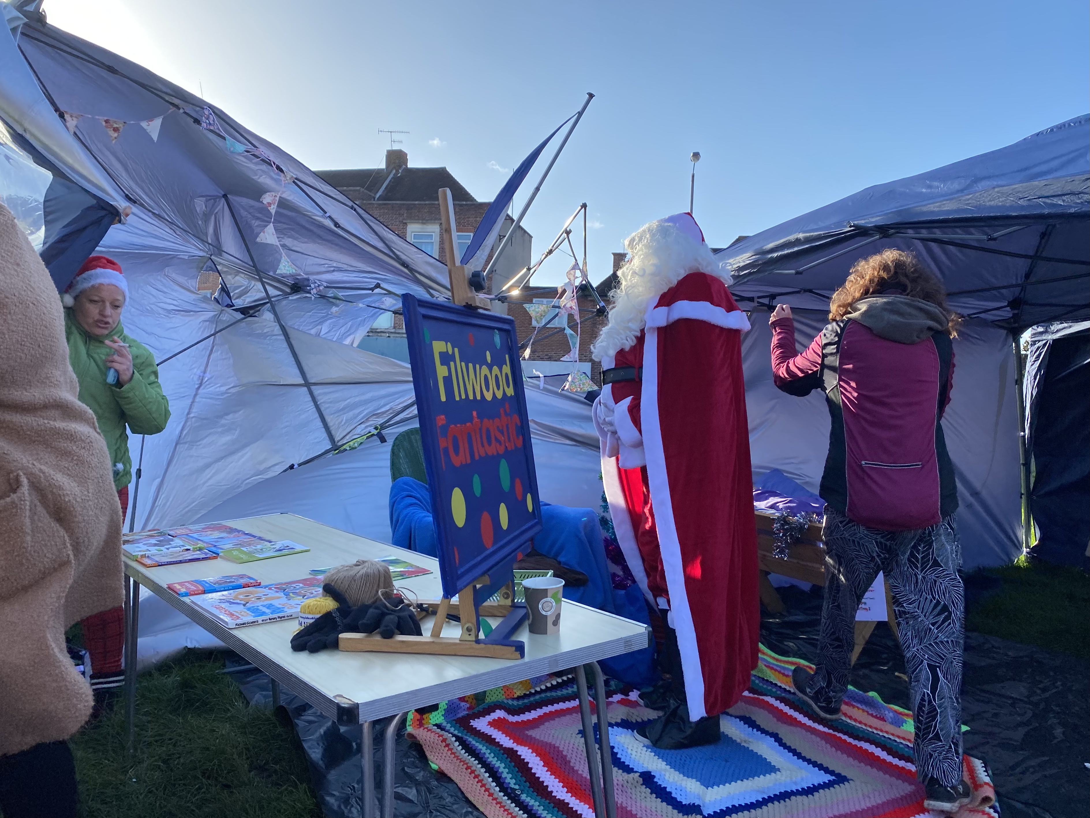 Filwood Community Market: a gust of wind almost blew Santa and his gazebo back to the North Pole. Photo by Charlie Watts
