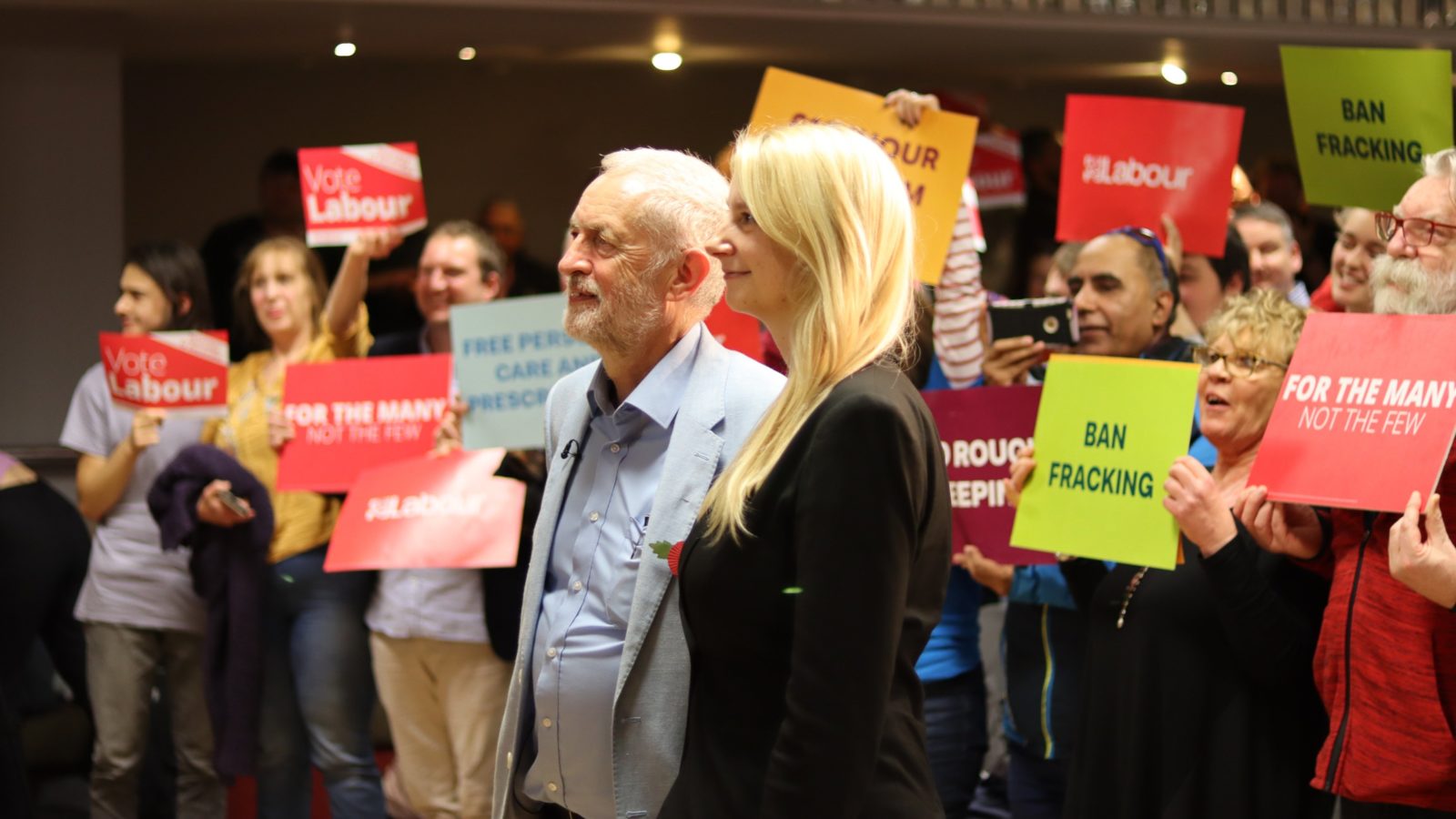 “While campaigning in the winter is miserable, think of a Labour government in the spring,” Corbyn told the capacity crowd, who greeted him with a standing ovation.