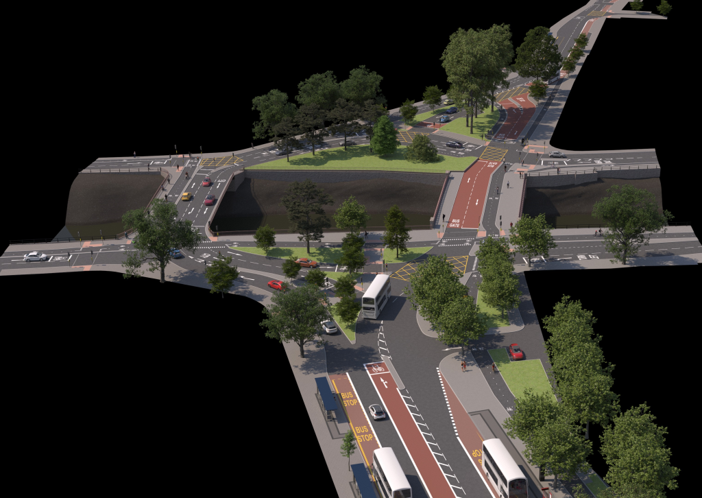One bridge will be turned into a two-way road and the other will become a bus-only bridge. Cycle lanes will be installed too, connecting up several missing links in the cycling network.