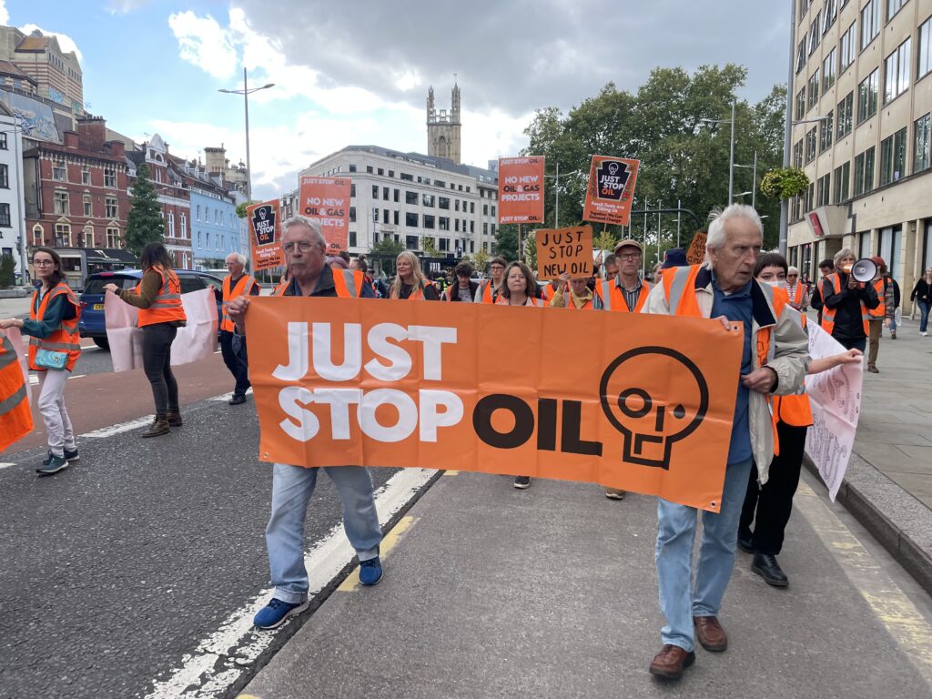 The noise of car horns from angry drivers inconvenienced by having to slow down accompanied Just Stop Oil as they marched through Bristol.