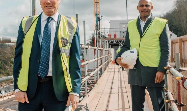 Marvin Rees and Keir Starmer visit a new housing development on Bath Road – photo: Labour Party