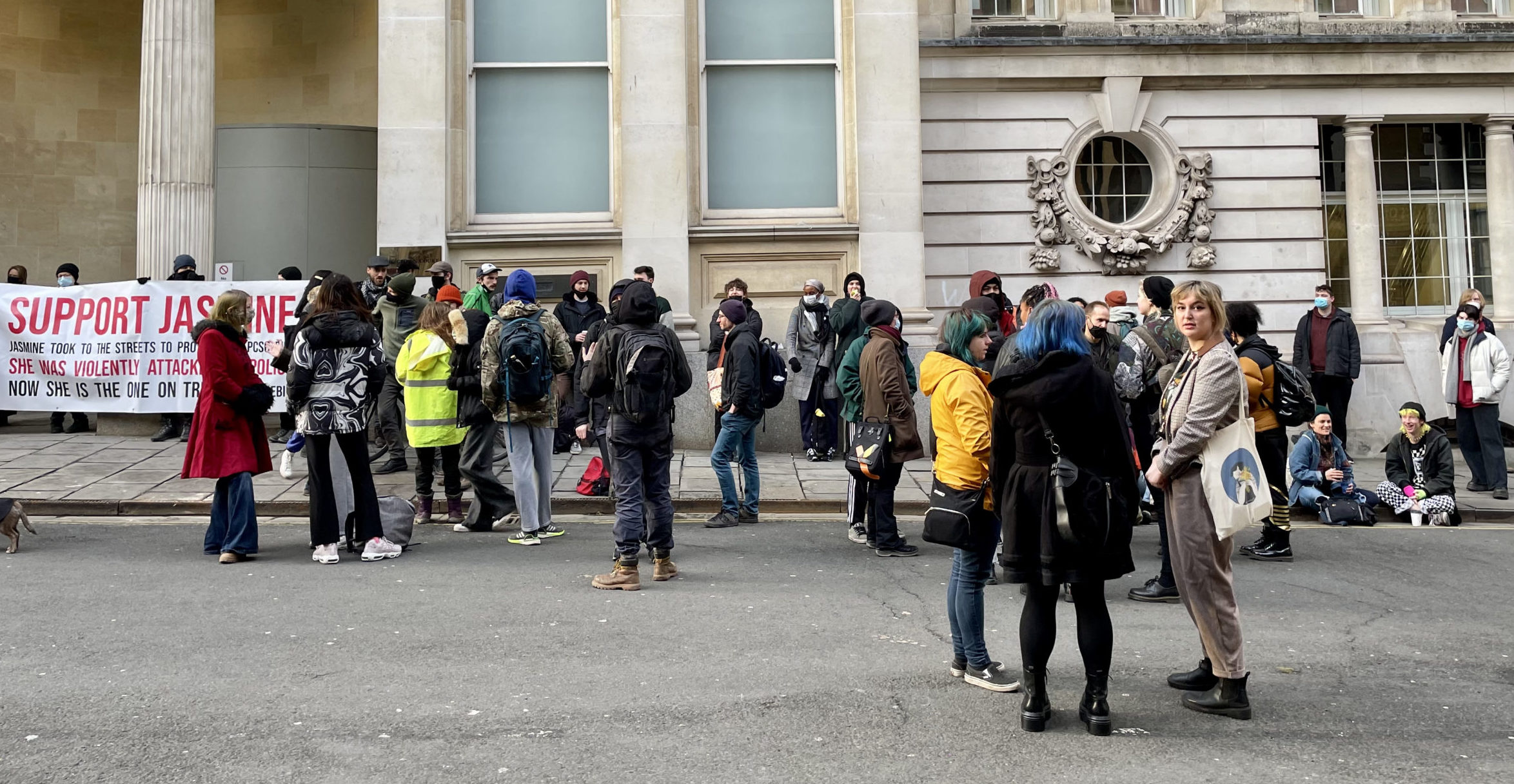 The court heard that the defendant daubed graffiti that read ‘sluts against cops’ on a police vehicle and was “encouraging” the crowd. The charge of riot relates to this, as well as banging on a wheelie bin, chanting “fuck the police”, pushing against police lines and pushing officers’ shields.