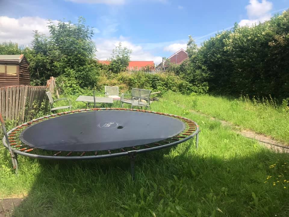 Before the transformation, Storm’s back garden was overgrown and unsafe, with a broken trampoline. Photo by Nick Haskins