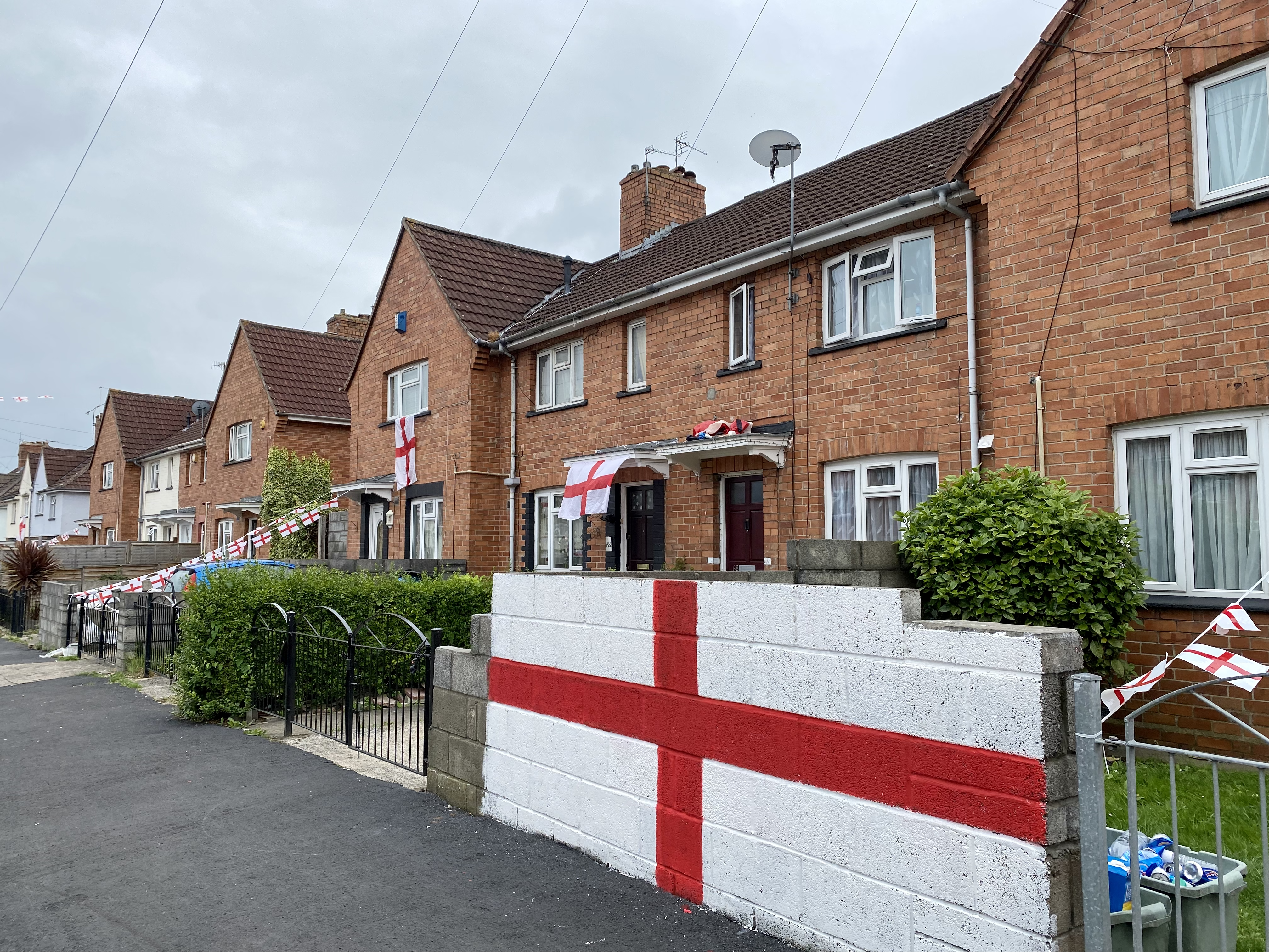 Every house in the street is showing its support for the Three Lions. Photos by Charlie Watts
