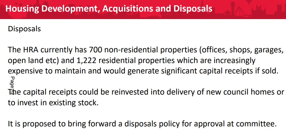 “The option to dispose of a small number of council properties would only go forward under a disposals policy approved by members, and it is common practice for local authorities to have such a policy.