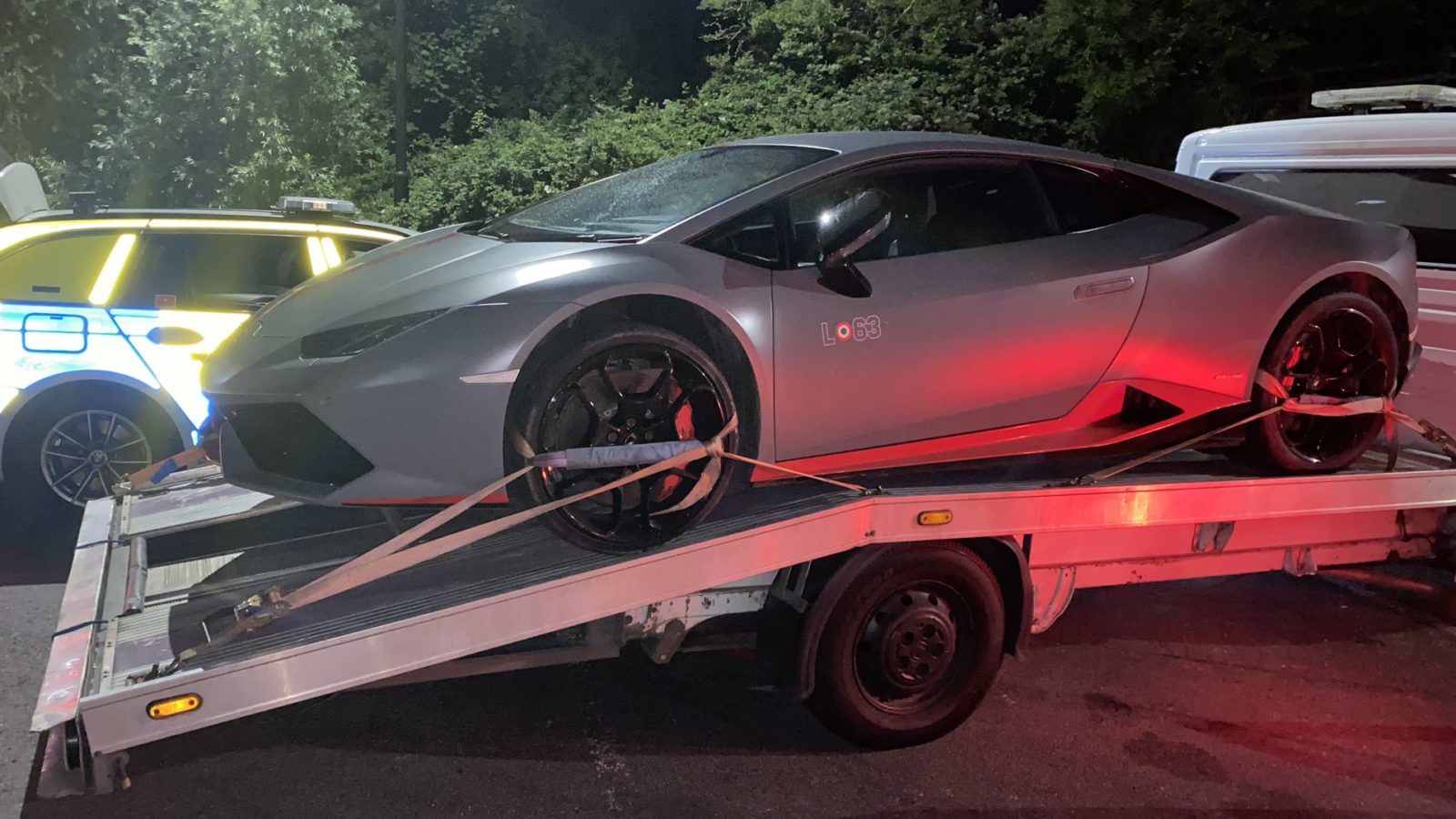Avon and Somerset Police’s road safety team quoted the classic fable of the tortoise and the hare after the arrest in the early hours of Sunday morning, as well as tweeting a photograph of the supercar on a low loader.