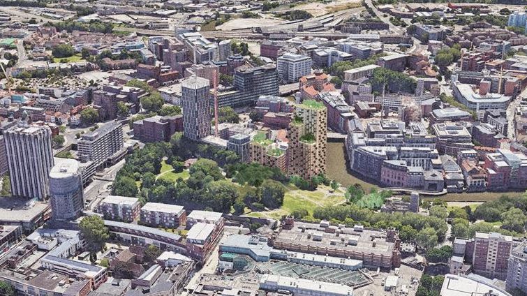 “Goram Homes is seeking a partner with the expertise to deliver this highly sustainable, landmark development overlooking the Feeder Canal (sic), next to the historic Castle Park and within walking distance to transport hubs and all the comforts of the city centre.”