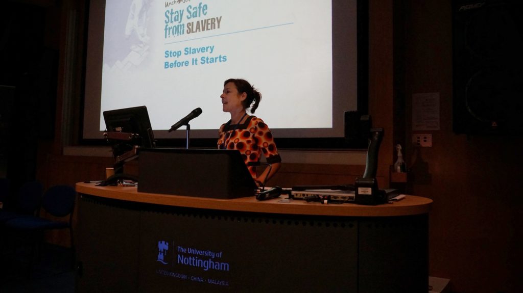 Unchosen’s Júlia Tomás presenting the Stay Safe from Slavery prevention project at the charity‘s conference in June