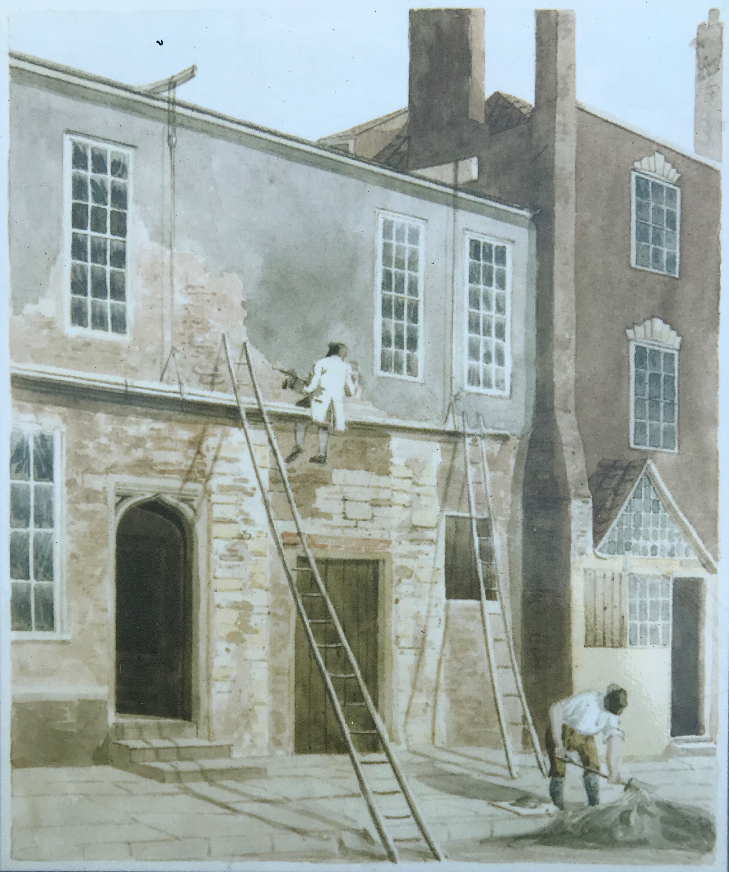 In the 1660s, the vaulted chambers – one of the few castle buildings to escape demolition – was incorporated into a new house on the corner of Tower Street and Castle Street – courtesy of Bristol Archives