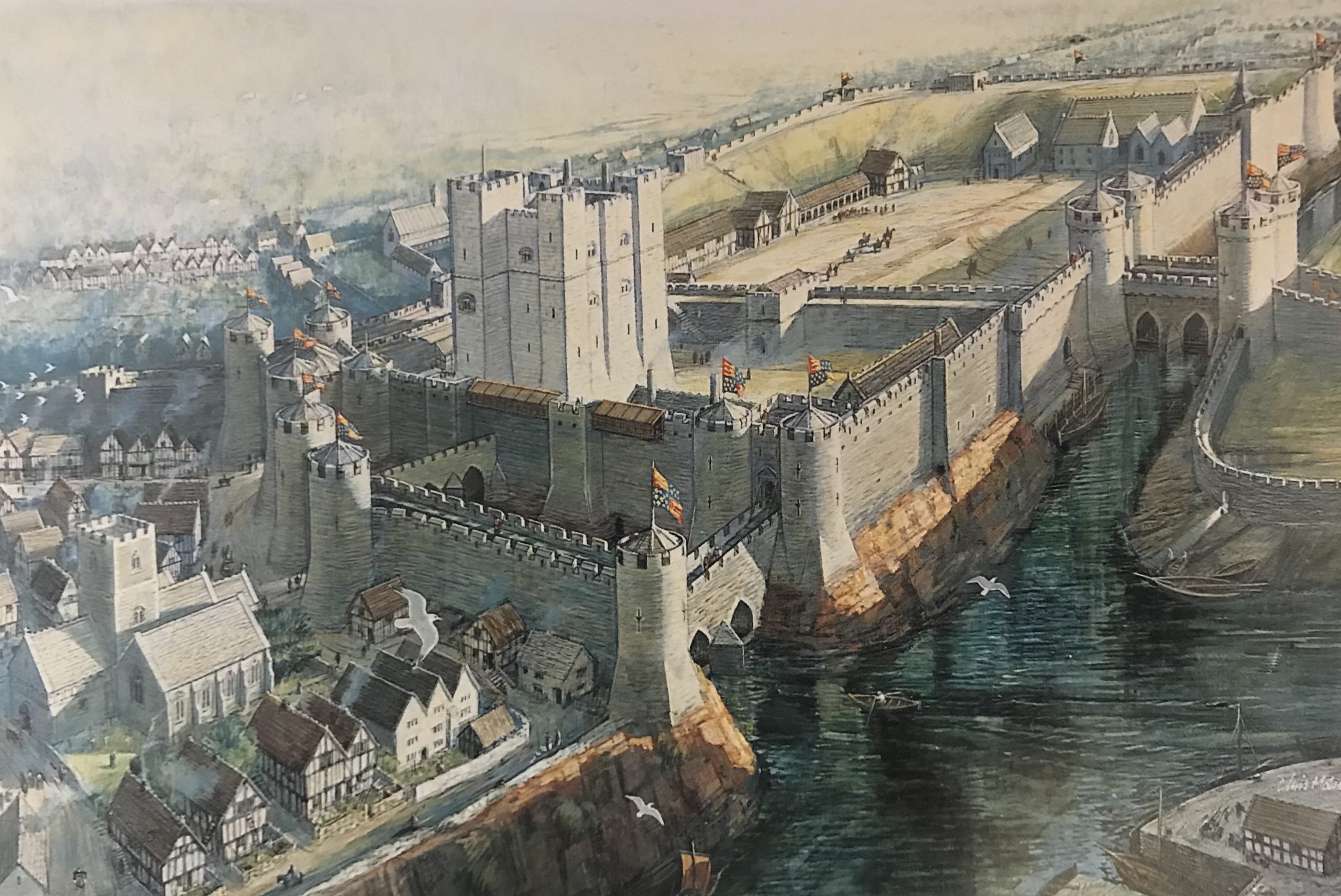 Built in the 11th century by Robert the first Earl of Gloucester, Bristol Castle was once the largest Norman castle in England – illustration by Christine Molan