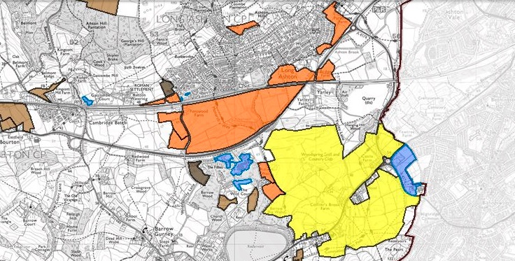 A map of the proposals shows a 205 hectare swathe of land east of Bishopsworth around the A38 and Woodspring Golf Course, just across the valley from Long Ashton, highlighted as one of the “most suitable” sites for 4,000 homes.