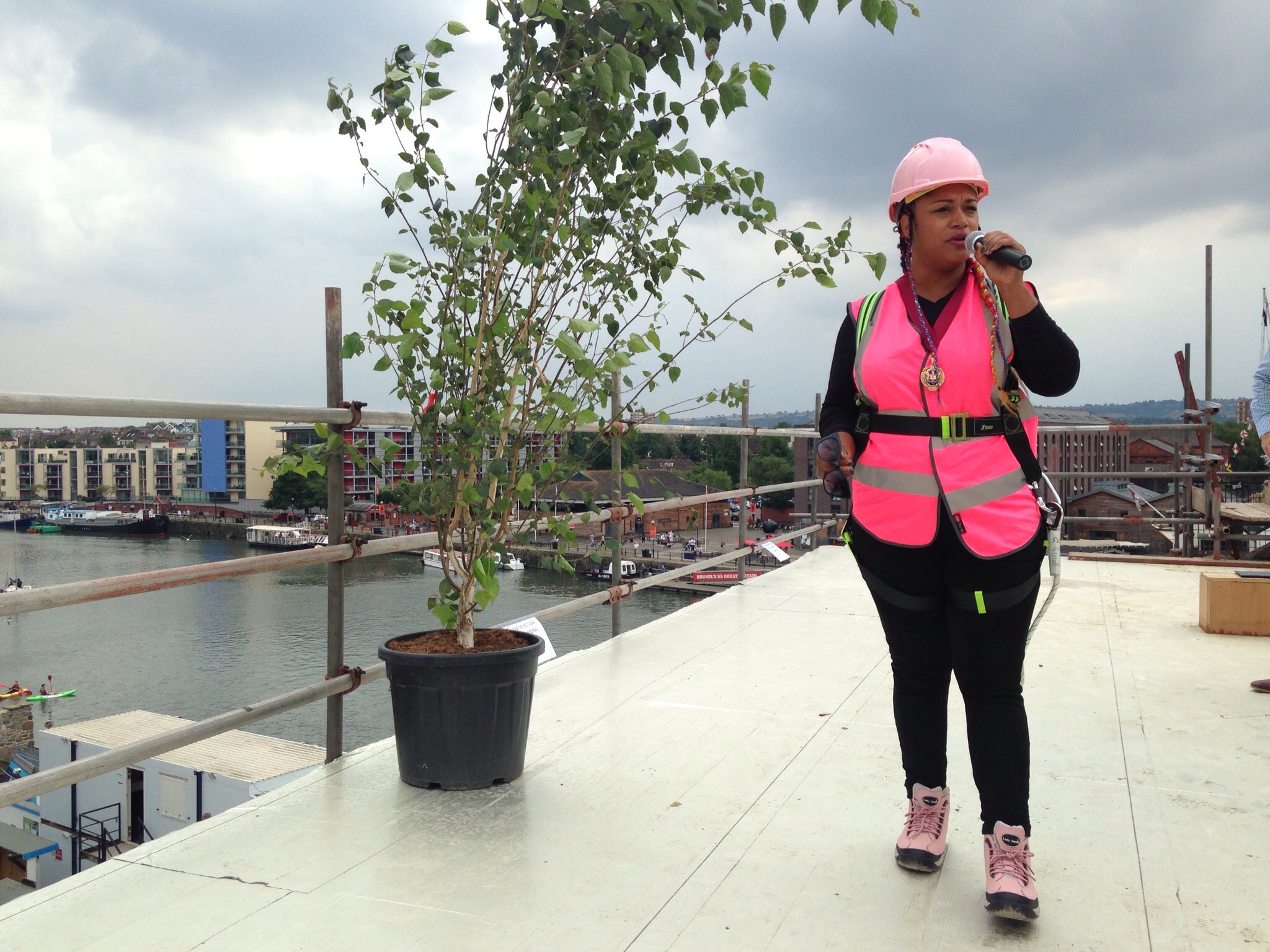 The occasion was the topping out ceremony of Brandon Yard, just off Anchor Road opposite the SS Great Britain – with panoramic views over the water one way and St George Primary School at the foot of Brandon Hill the other.