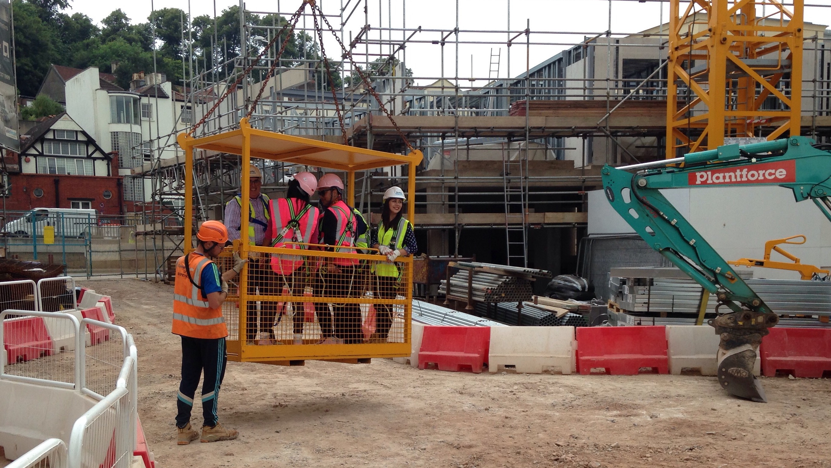 Dressed in a pink hi-vis vest and matching pink helmet and safety boots, Bristol lord mayor Cleo Lake dangled from a basket attached to a crane above one of the last remaining sites to be developed next to the Floating Harbour.