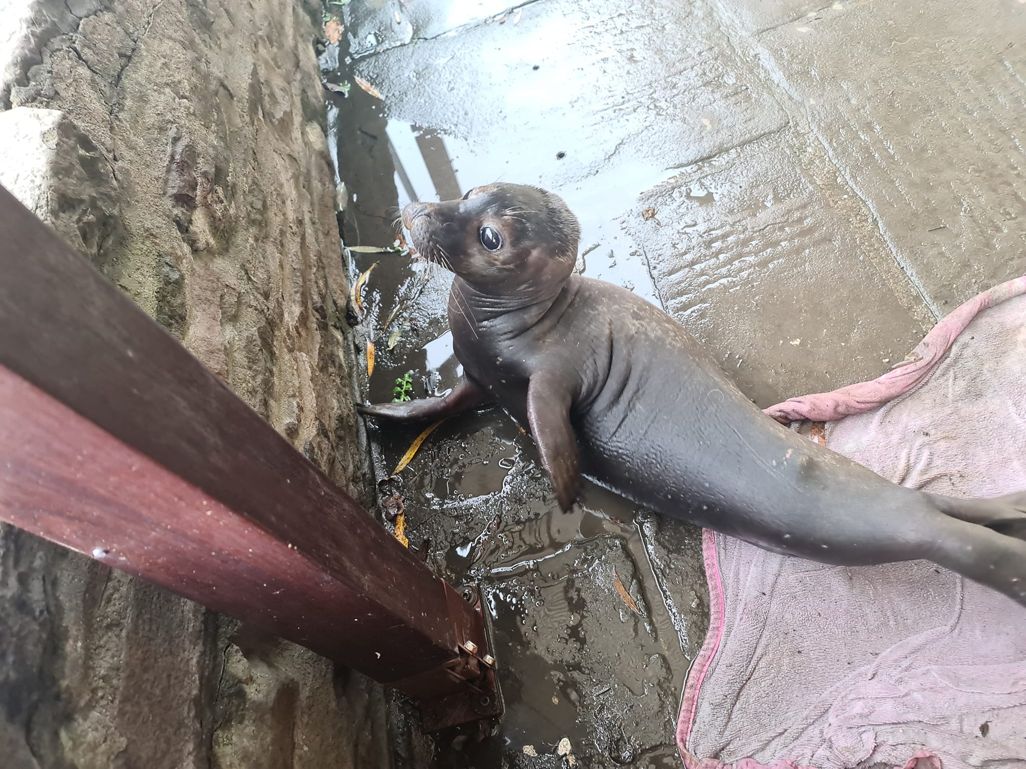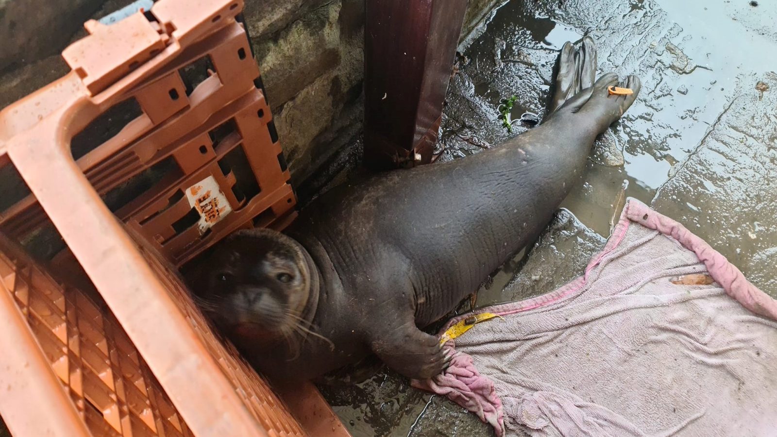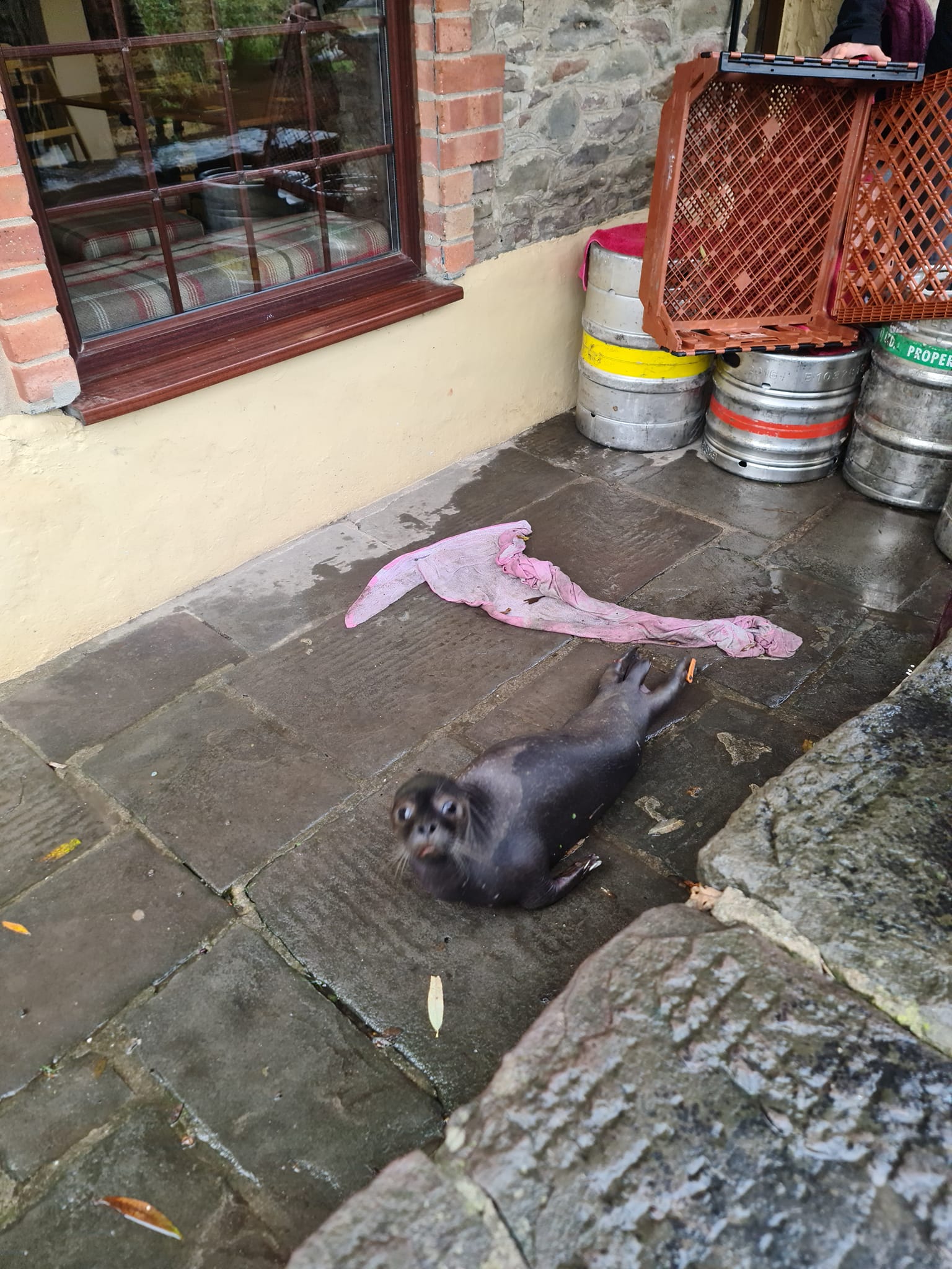 “A big thank you to the RSPCA & the British Divers Marine Life Rescue Centre who later identified this little pup known to them as Neoprene, he was tagged in Scotland in June 21 and managed to travel all the way to pubs front door.
