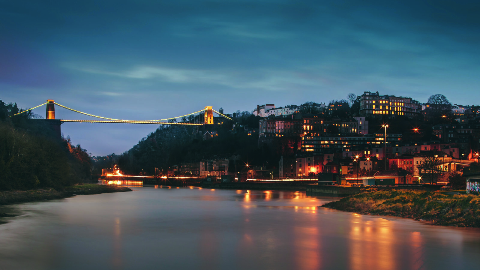 Brett and Ken wanted to take the long exposure shot at dusk, so house lights would be on, but it would still be light enough to capture details of the buildings and bridge. They also shot it at rush hour to get light streaks from the traffic.