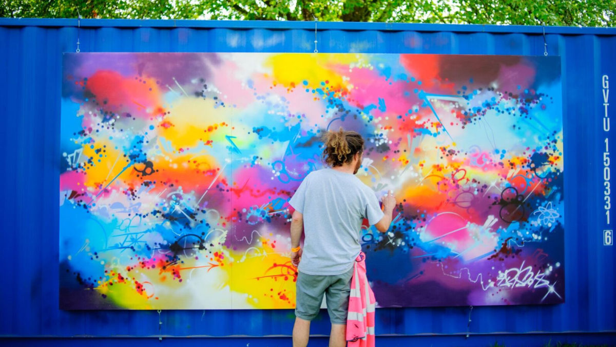 Artist Paris working on his piece for the festival (photo credit: ShotAway)