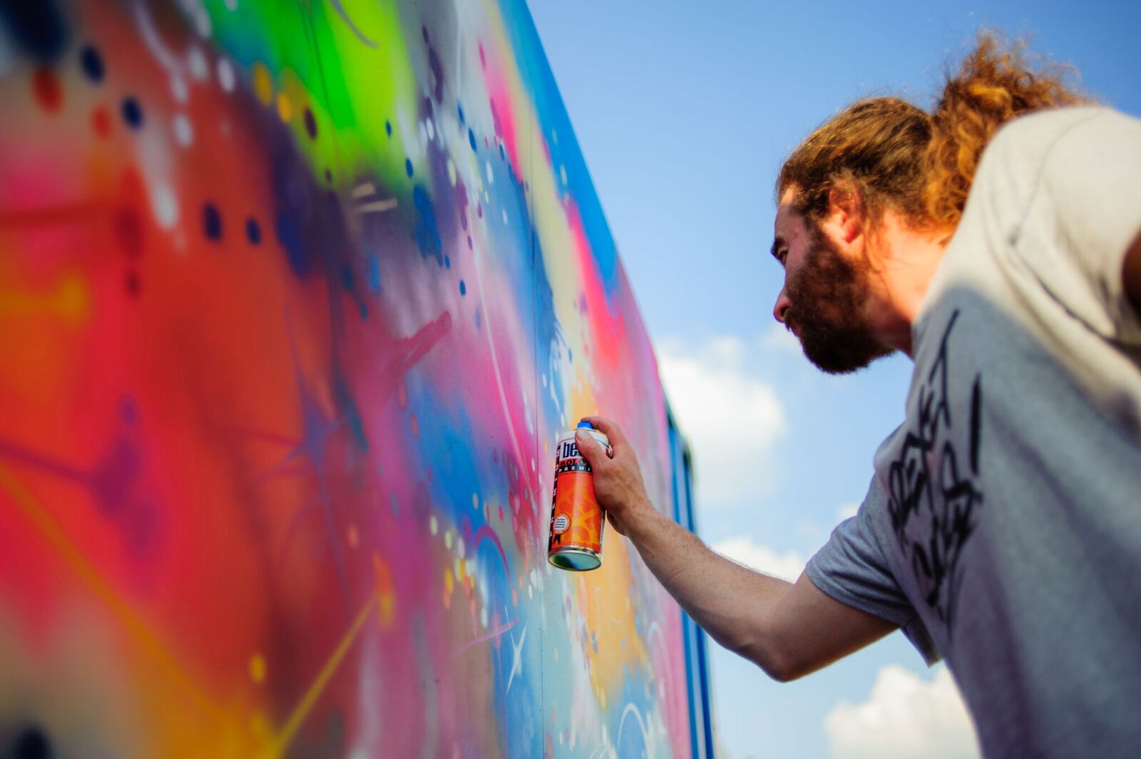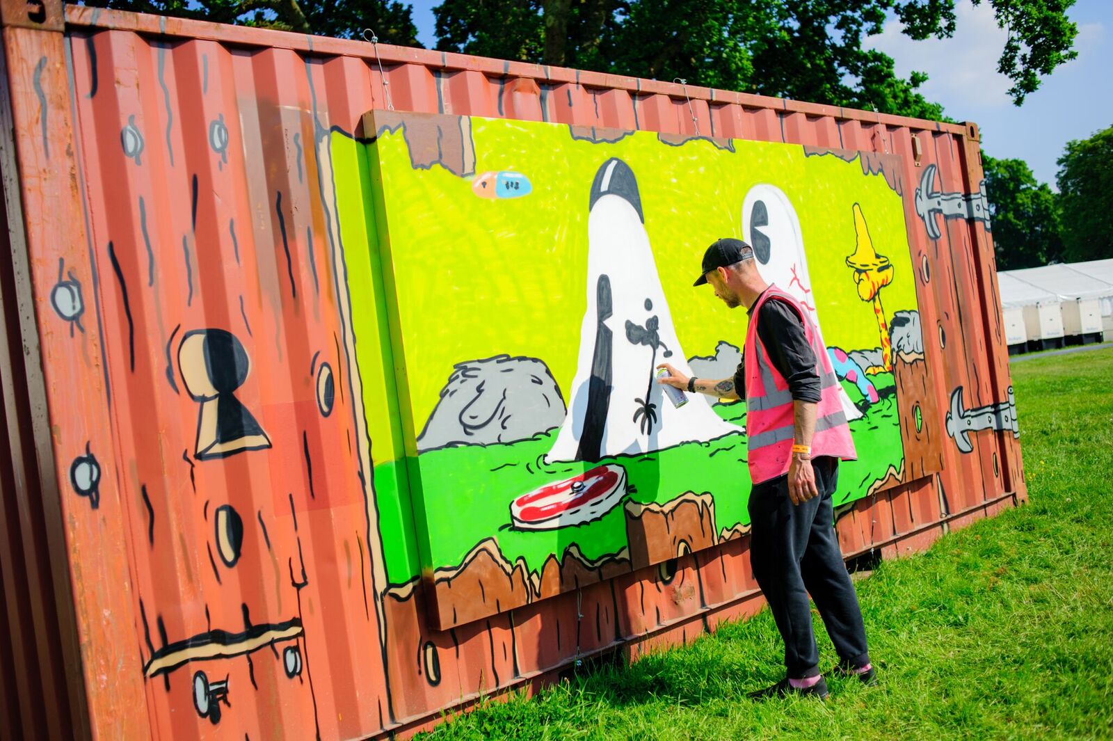Another of the graffiti artists, known as 45RPM, aims to “create a peace over war message” with his piece. He said: “the sun’s out, it’s a festival, and this should be something everyone can look at and smile.