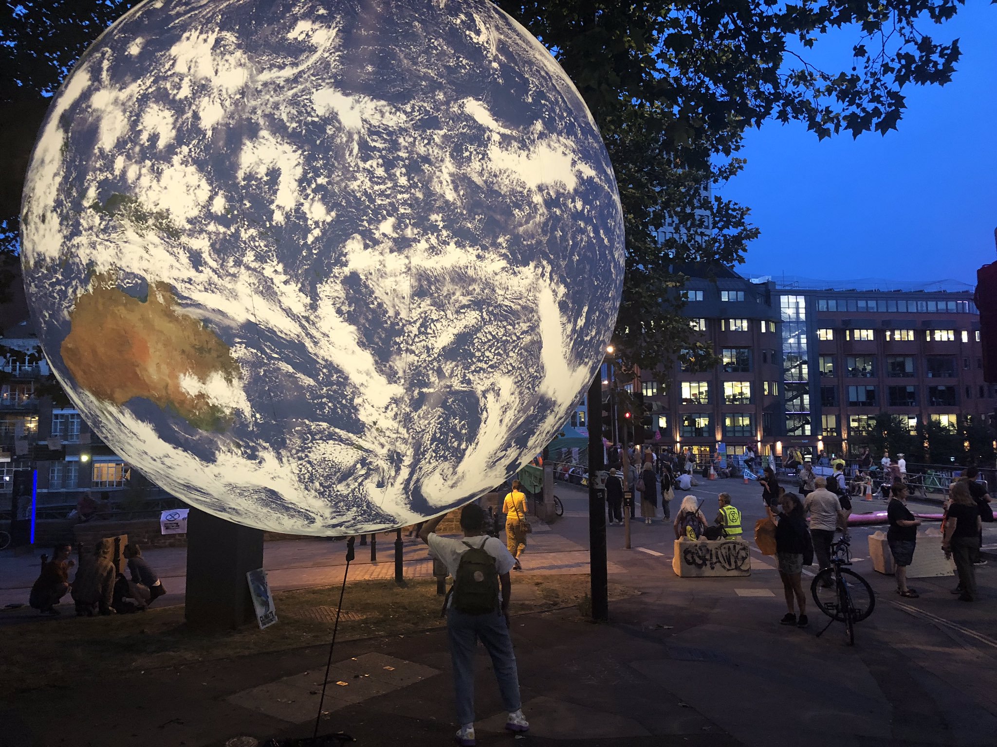 Luke Jerram’s giant Earth installed at XR Bristol protest