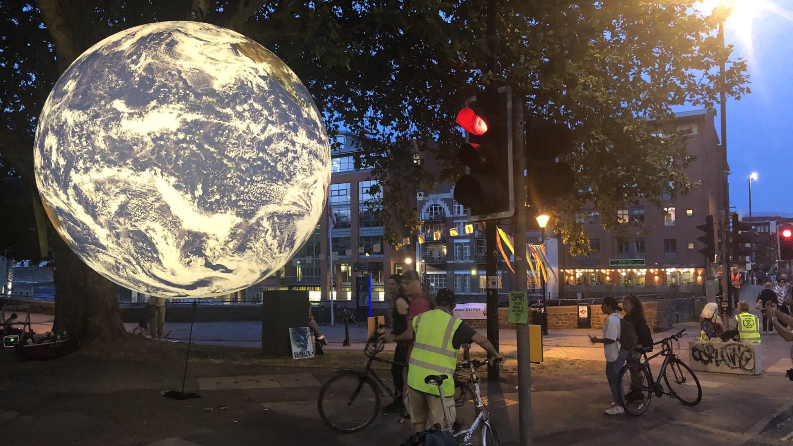 Luke Jerram’s giant Earth installed at XR Bristol protest