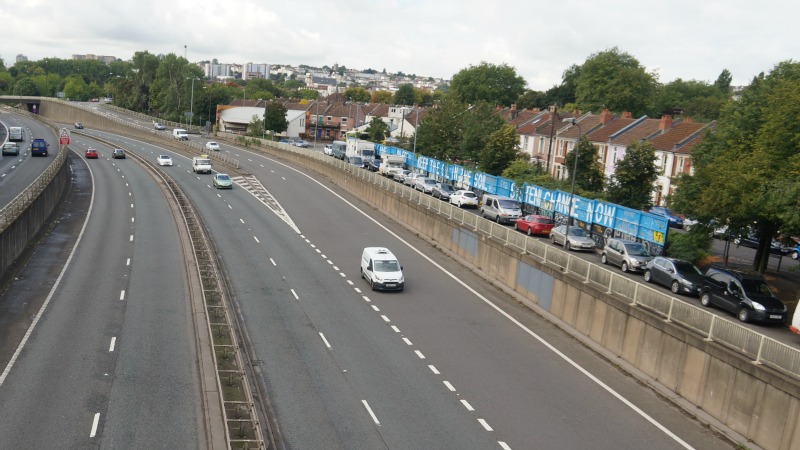 First things first. Engineers are placing a new bridge over the M32 to accommodate the new MetroBus segregated bus route which (it is hoped) will cut journey times. The bridge will go here: