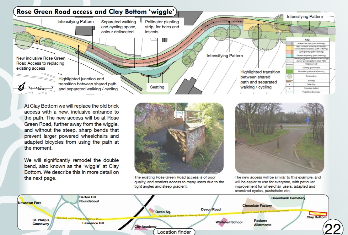 Included in the plans is a new, level access point just by Clay Bottom, from Rose Green Road, gentler, sloped access at Russell Town Avenue, widening of the path to the east of the St Philips Causeway underpass, which will incorporate separate walking and cycling lanes, and widening the path to the east of Lawrence Hill bridge.