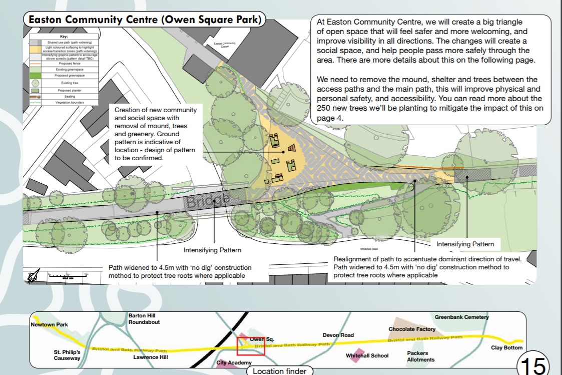 The space by Easton Community Centre is set for some of the biggest changes – image courtesy of Sustrans/ One Path project